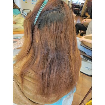 カラーの履歴と毛先に縮毛矯正の履歴が残っています。