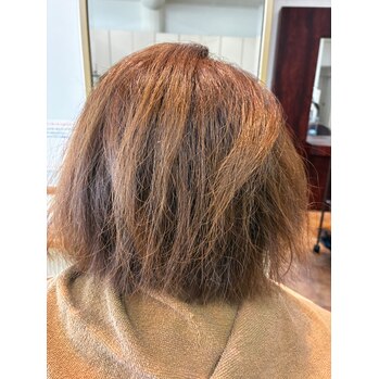 ダメージとクセと、軽くカットされている為、かなりパサつきが気になります。